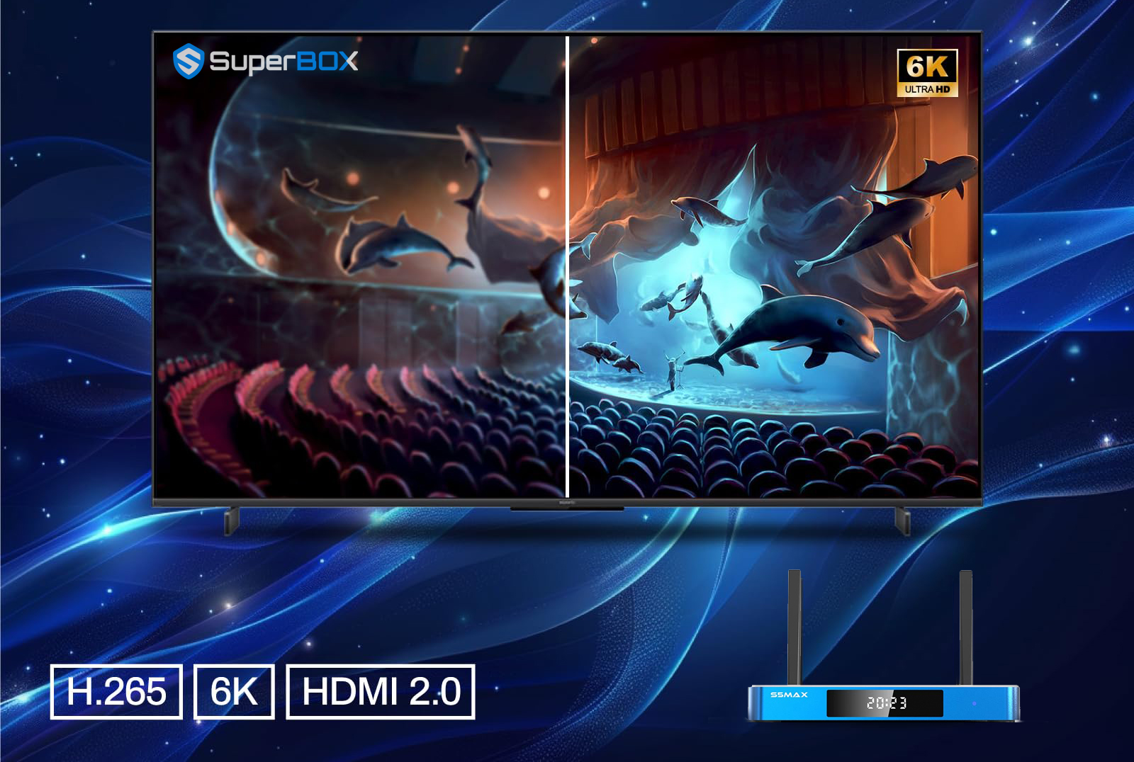 - Excellent image quality: With Superbox’s support for High Dynamic Range and 4K/6K Ultra HD quality, you can experience brilliance and fluidity like never before.