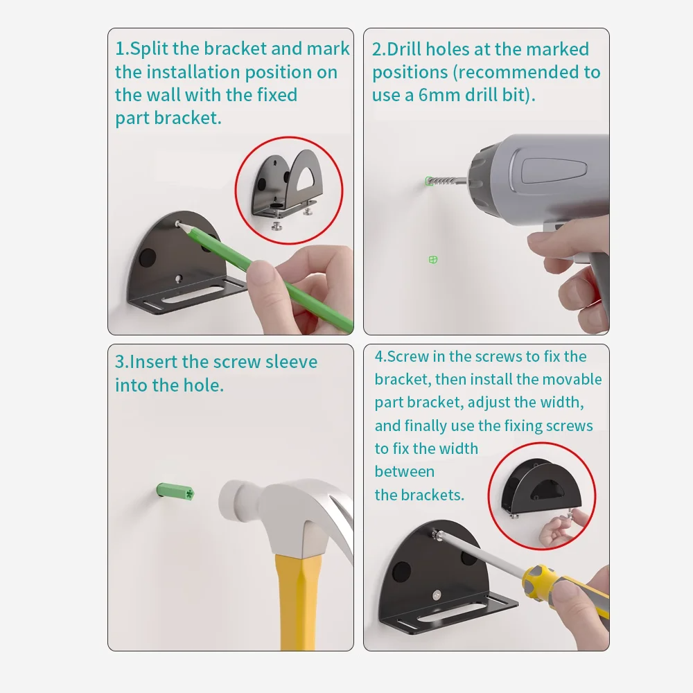 Superbox TV Box Wall Rack Universal Android System TV Box, Router Wall Mounted Bracket Carbon Steel Material Width Adjustable Black Rack